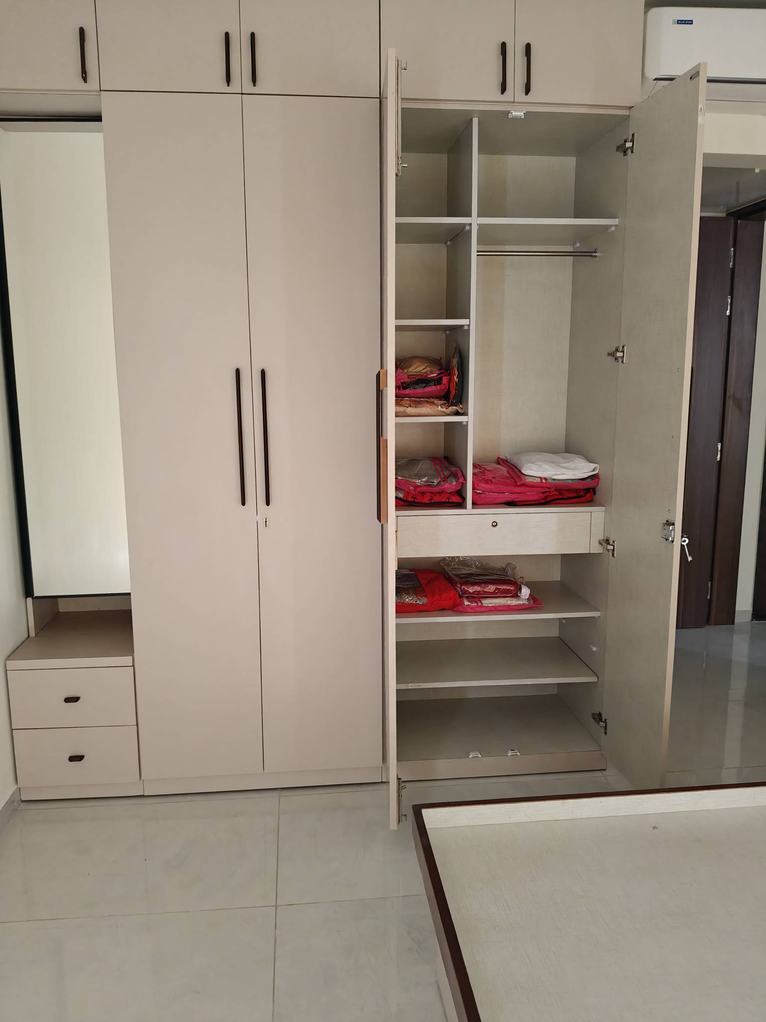 A wardrobe is a modern storage solution designed to organize your clothes, accessories, and essentials in a smart and stylish way. Our modular wardrobes are crafted to maximize space and functionality, offering a perfect mix of hanging areas, shelves, and drawers to suit your daily needs. Available in a wide range of designs, finishes, and configurations, these wardrobes can be customized to match your room layout and interior style. Built with high-quality materials and precision fittings, our wardrobes provide durability, smooth operation, and a clean, elegant look that enhances the comfort and appearance of your bedroom.